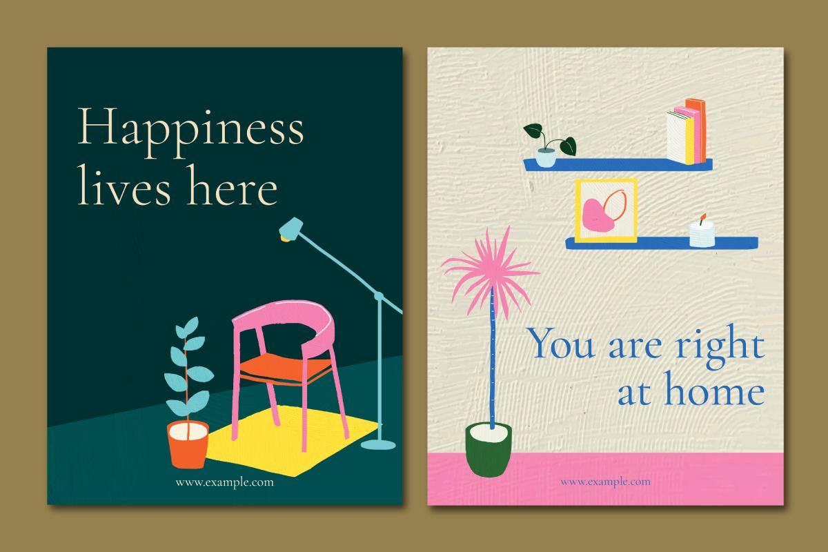 • Line drawings and minimal illustrations for Scandinavian-style spaces